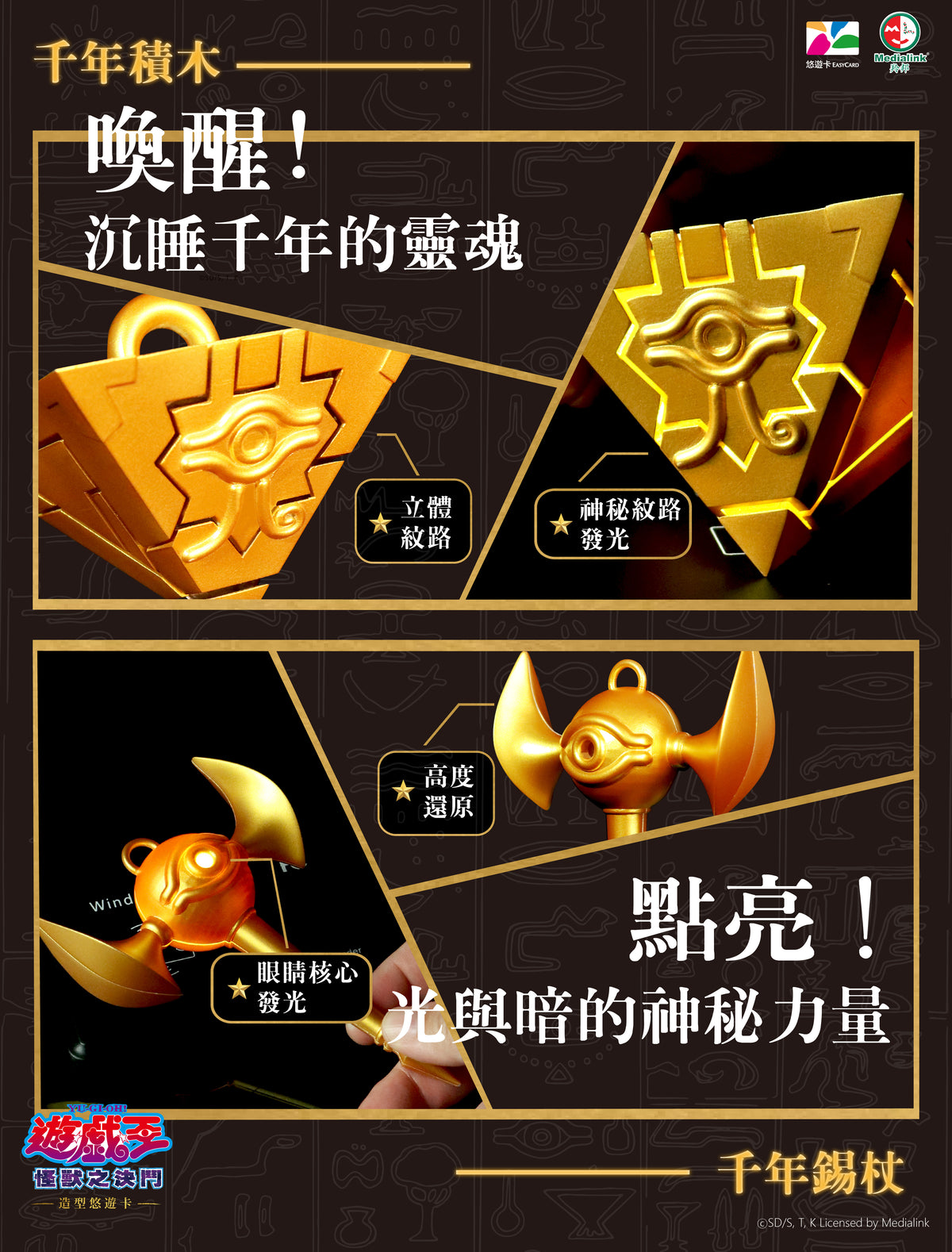 【預購】25/6月 Be come true 正版授權 遊戲王 怪獸之決鬥 千年積木&千年錫杖 發光造型悠遊卡 套組
