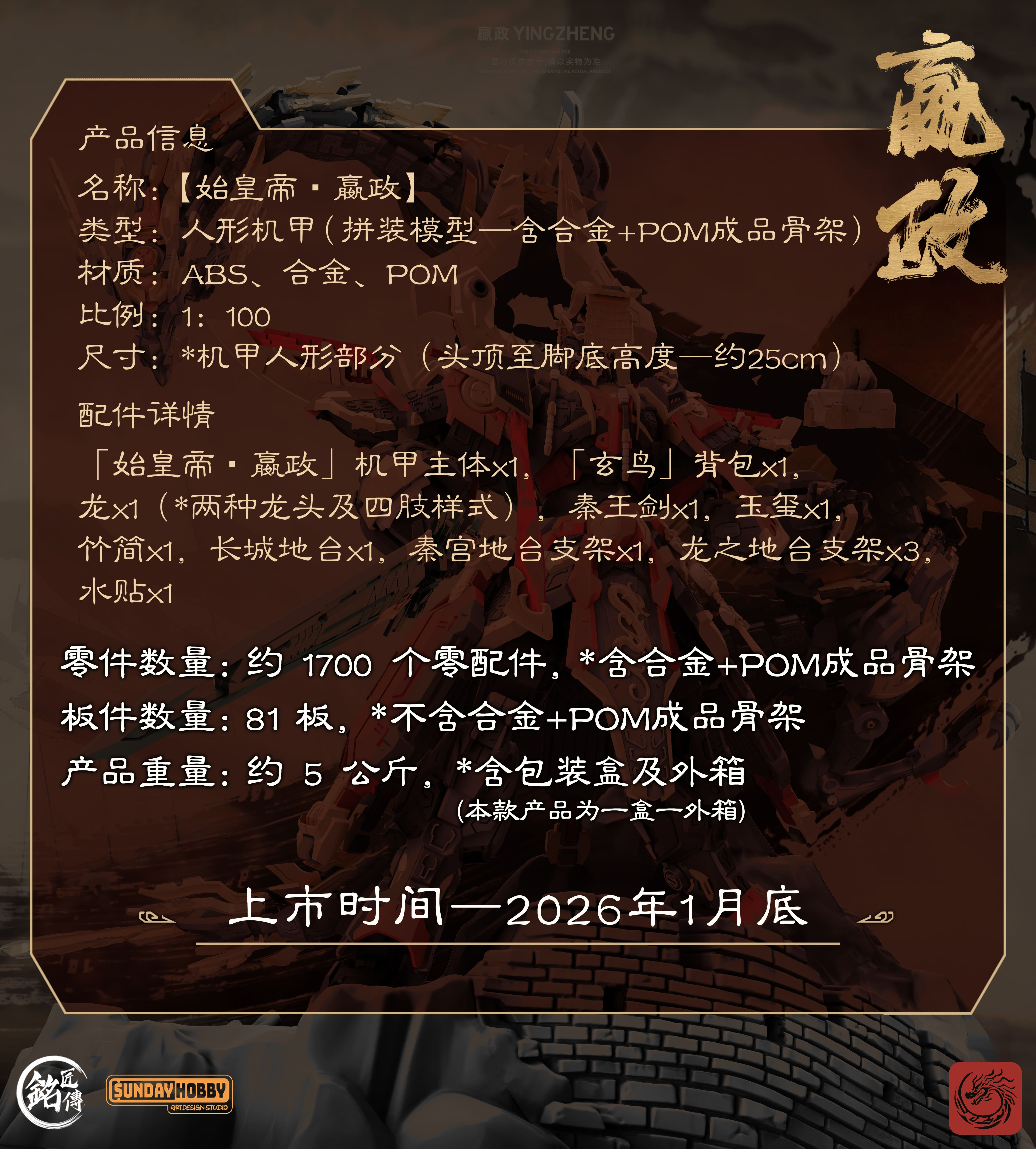 (預購)26年1月 銘匠傳 sundy hobby 始皇帝 贏政 合金骨架